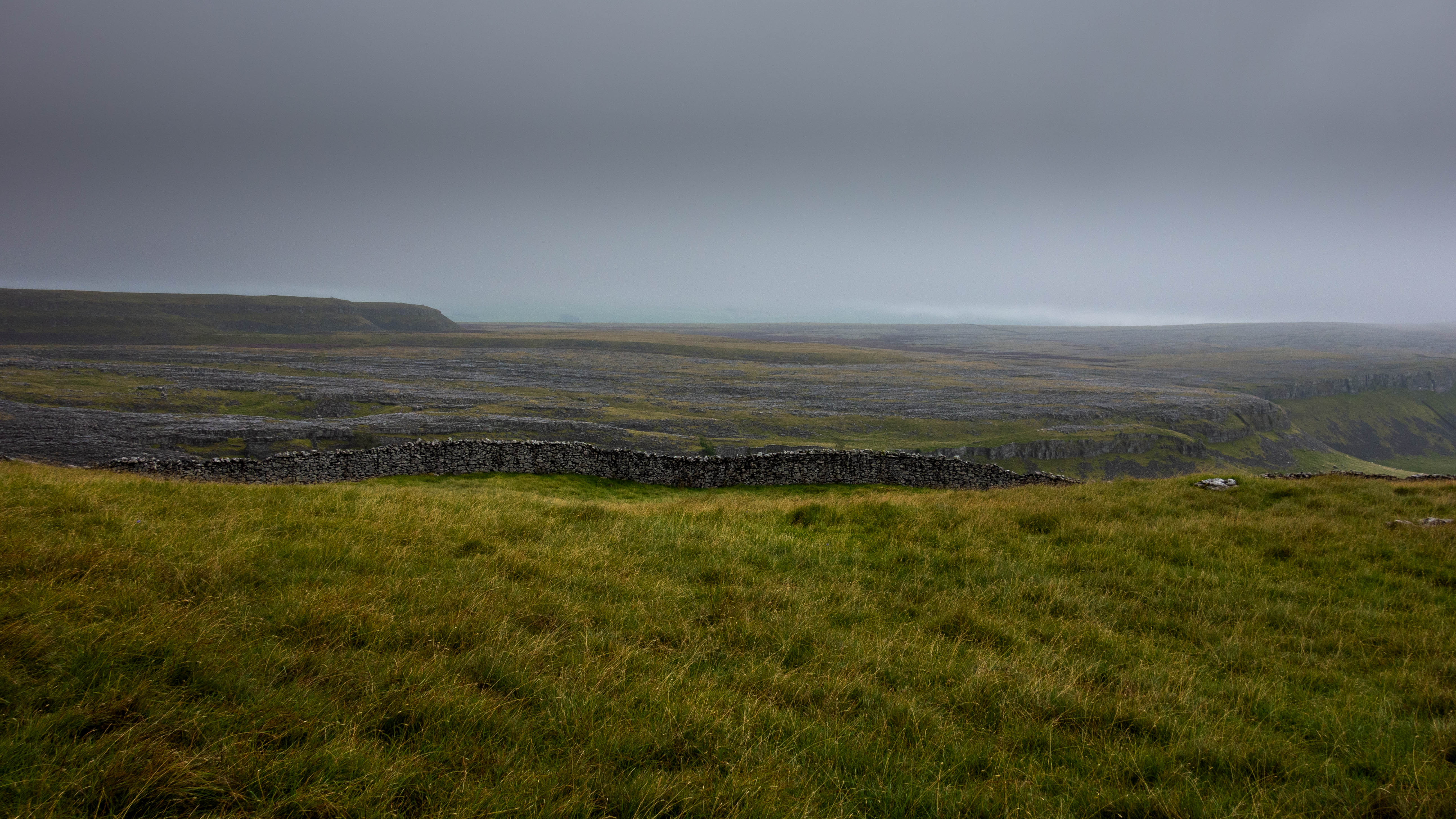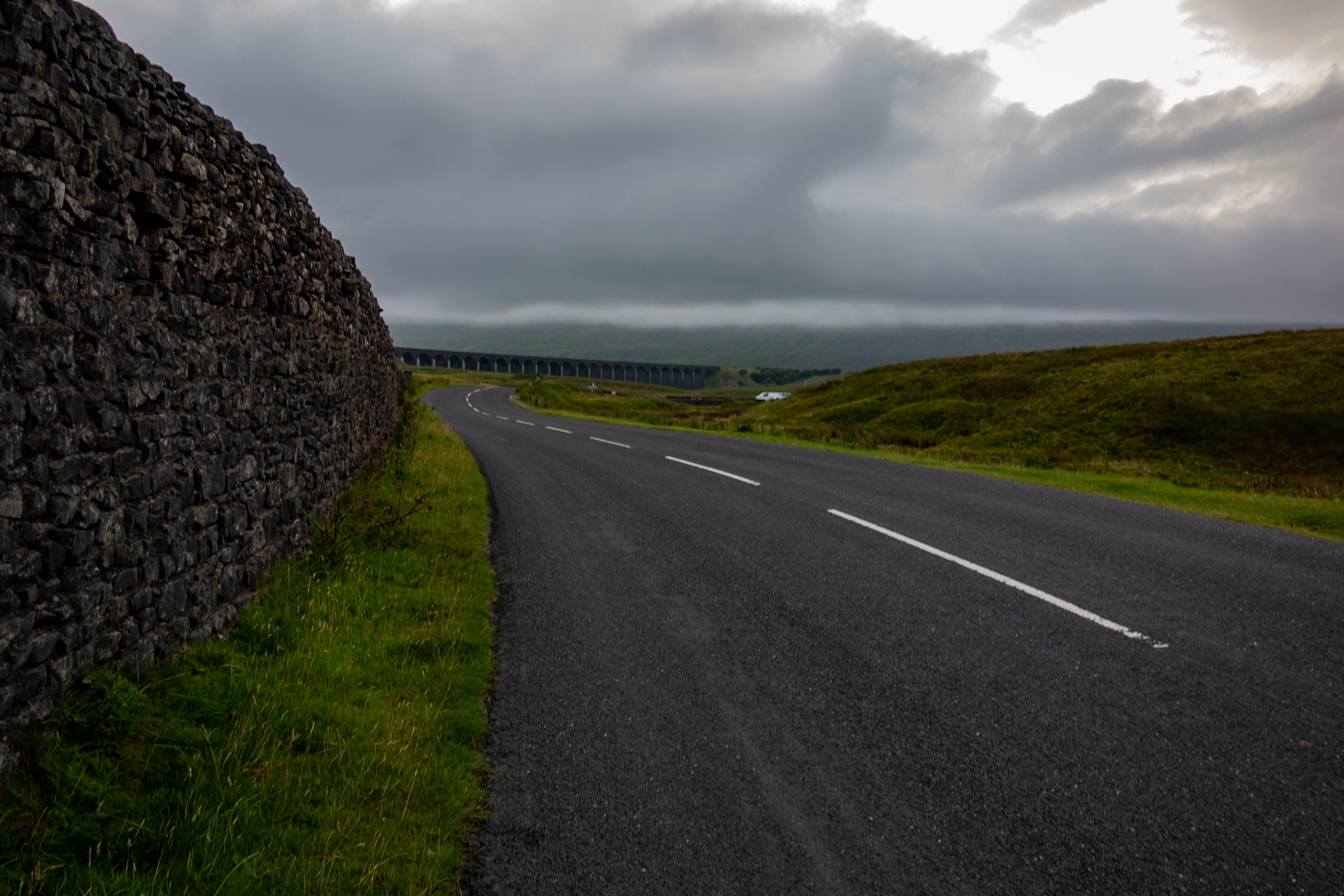 The route continued through farmland, past some sort of “Covid safe” concert with deck chairs set up in small squares and along bridleways that were more like fields of grass than paths. I made sure to stop at a pub for a proper lunch this time before heading over another short section of moor and down into Settle. I took the backroads rather than the next climb, before picking up the official route again near Helwith Bridge. The trail turned off the road and followed some good bridleways and old droves that took me up onto the moor once again. It started raining and this section was quite misty. As I wove my way along the hill past the odd sheep I was treated to a view out over a fantastic section of limestone pavement, before a descent took me back to the B679 and a nice ride down to the Ribblehead Viaduct. I ended the day with dinner in The Station Inn and contemplated staying but couldn’t justify the price. I rode on a short way, saw about 3 different owls and camped just off the track at the base of the next climb.
