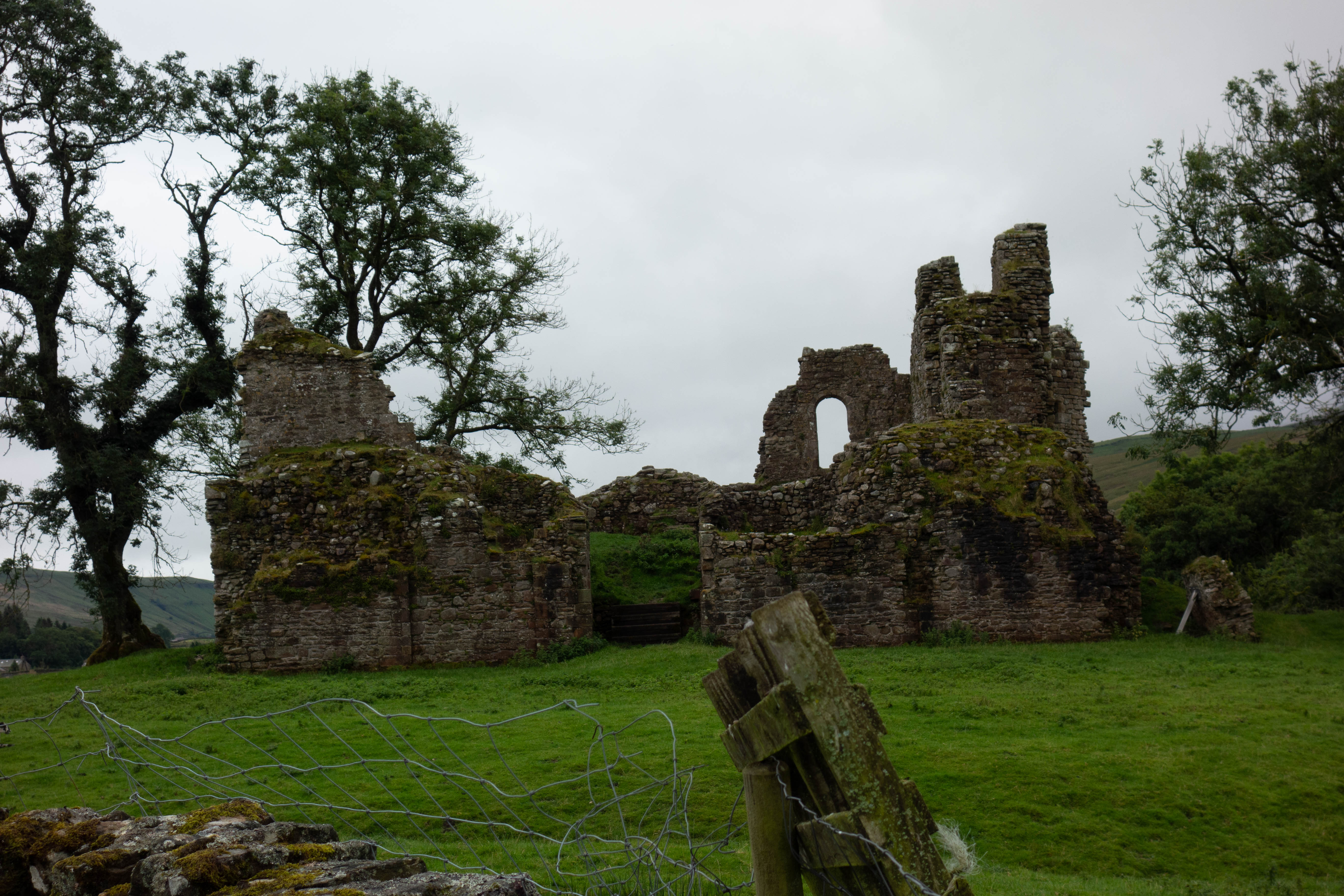 I couldn’t find the track for the next section. I think I had missed a gateway and the GPS was telling me to go through a fence, so I decided to stay on the road instead, trying to catch up on time lost to the slow going of the previous days. It was a really beautiful section of road, riding with views down the valley and hardly any traffic. I turned off the main road by Pendragon Castle and rode some muddy bridleways which were mostly just fields with no path, following farm tracks before heading into Kirkby Stephen where I refilled my water bottles at the campsite I’d planned to stay at the previous night. It was busy in town, so after a quick look in the outdoor shop to see if they had any dehydrated meals to replace the one I ate on the first night (they didn’t) I headed on towards Appleby. This section of the route was a mix of nice quiet byways, a really shit bridleway through a farmyard full of slurry, a push up a hill where the path was mostly covered in hawthorn bushes and some more fields of long grass with little that resembled a path to follow.