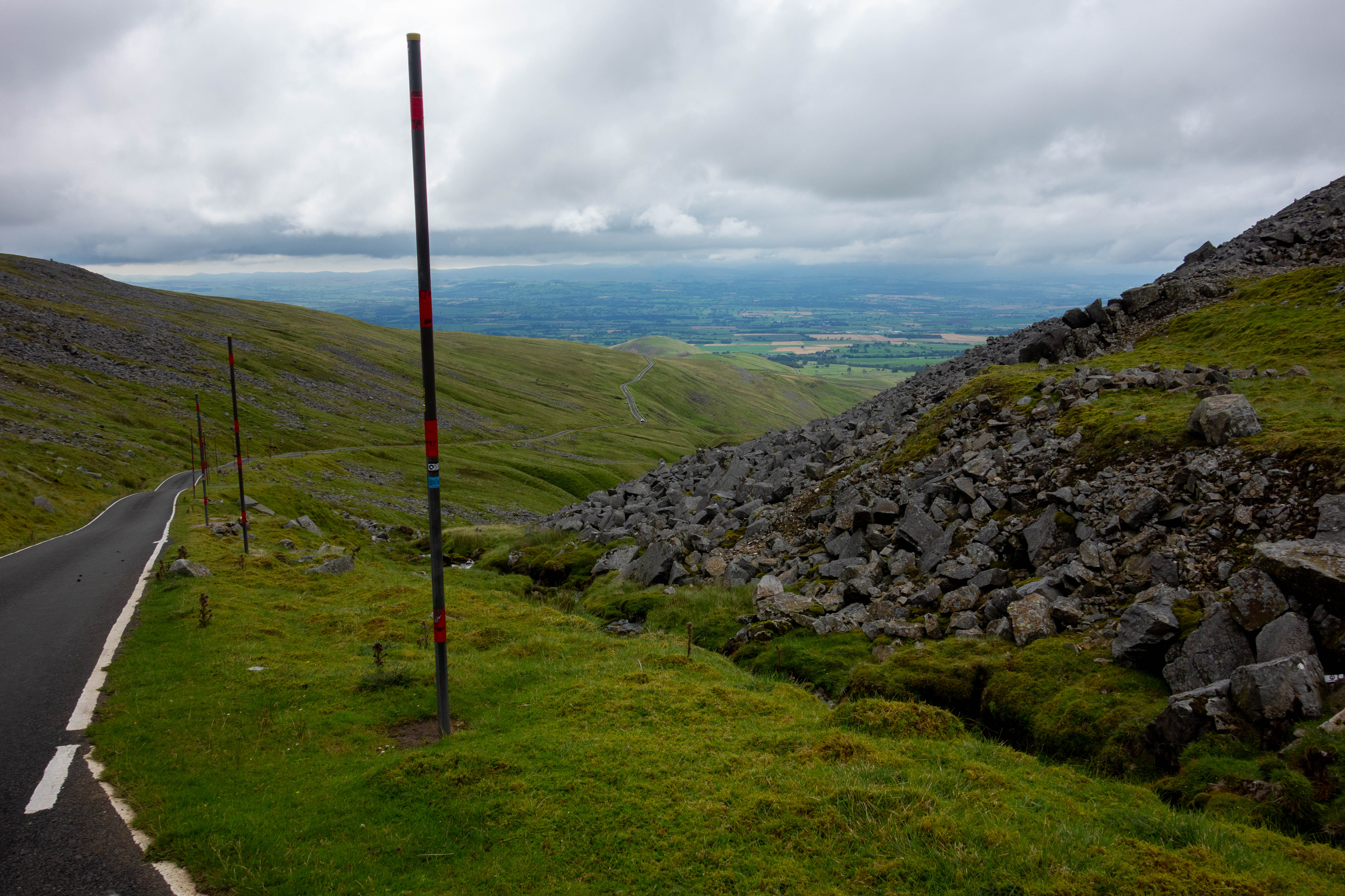 I rode out of Appleby along some quiet backroads and a few tracks towards the bottom of the next climb. This was the biggest single climb on the whole trail and although I didn’t know it at the time, it’s considered to be one of the greatest and hardest climbs in England. The road up Great Dun Fell is inconspicuous at the start, but then it just keeps going up. You can see the radar station high up in the distance as the road winds its way up towards it.