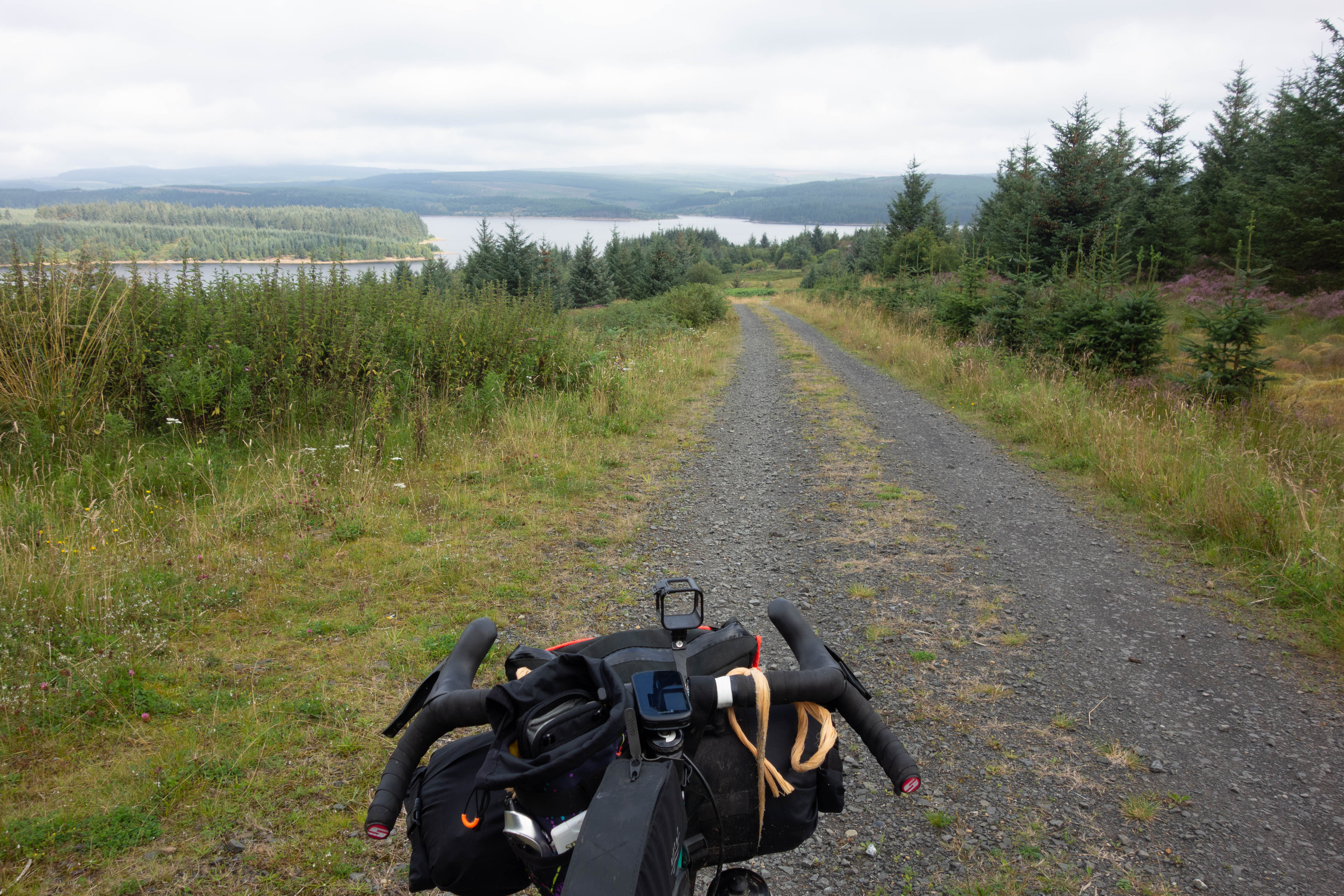 The climb up Minch Moor starts off as a push up a steep track before it becomes rideable again. It’s then a long grind up onto the moor, past beautiful swathes of purple heather before it starts to flatten out. It took me nearly an hour and a half and several podcasts to get to the top. The trail slips here and there’s two options on how to get back down – the main track, or the red XC trail as it descends back to the valley. I’d been riding for almost 11 hours and I just wanted to finish by this point, but after all the effort I’d put into getting up the hill, I couldn’t resist taking the red trail. It was great fun and I was surprised how well the Camino handled it, although I had to keep reminding myself that I had a fully loaded bike and another week’s worth of riding to do. I made it to the bottom in one piece and took a short section of road. A well-made cycle path took me to Glentress where I made full use of their drying room. It was a long day but I was back on schedule.