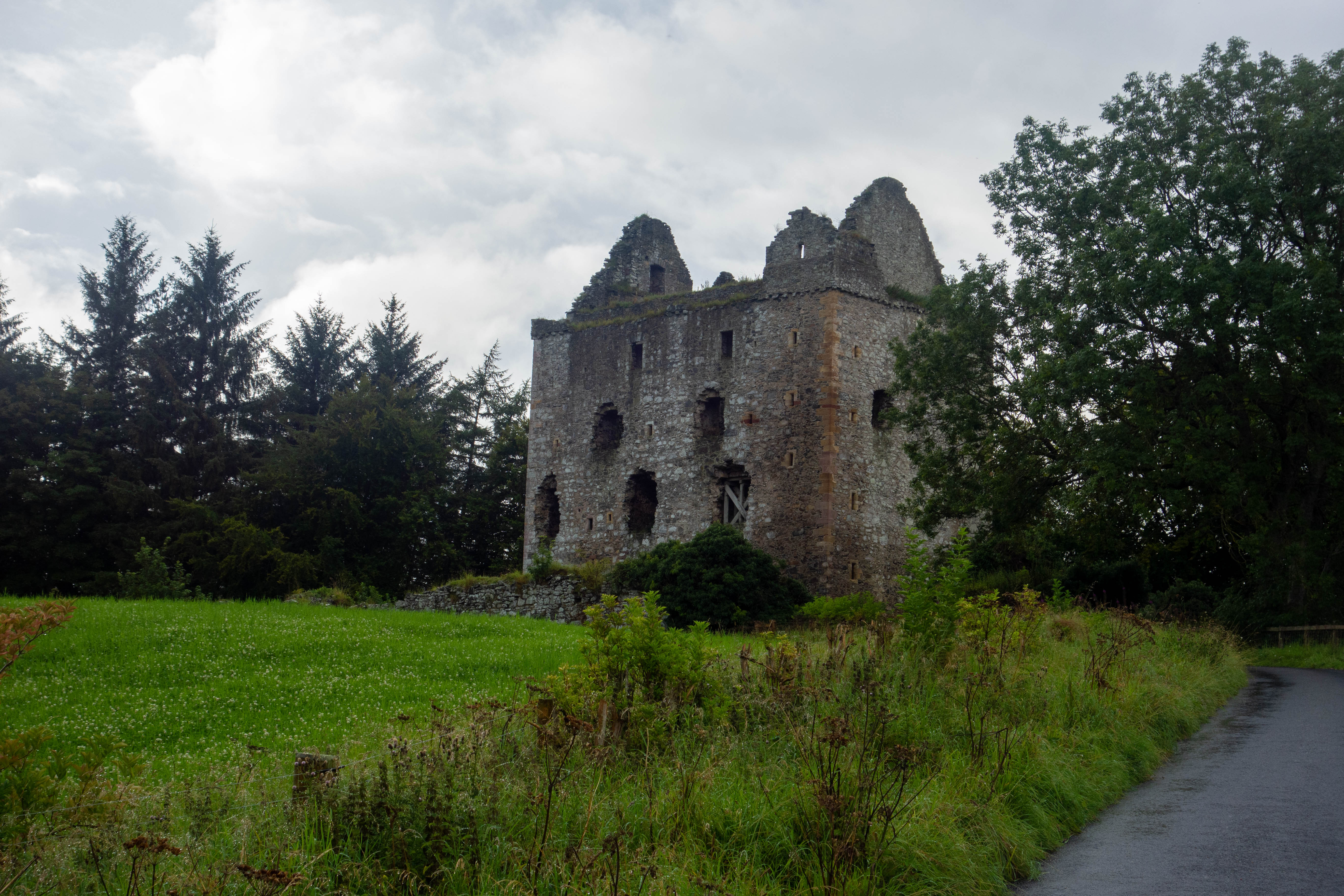 I left the wet moorland at Bridge of Guar and followed the road west towards the station. The station was a small detour from the route but there was a tearoom there where I hoped to be able to dry out and re-fuel. I passed a sign for the tearoom that said “closed on Fridays”. Today was Friday.