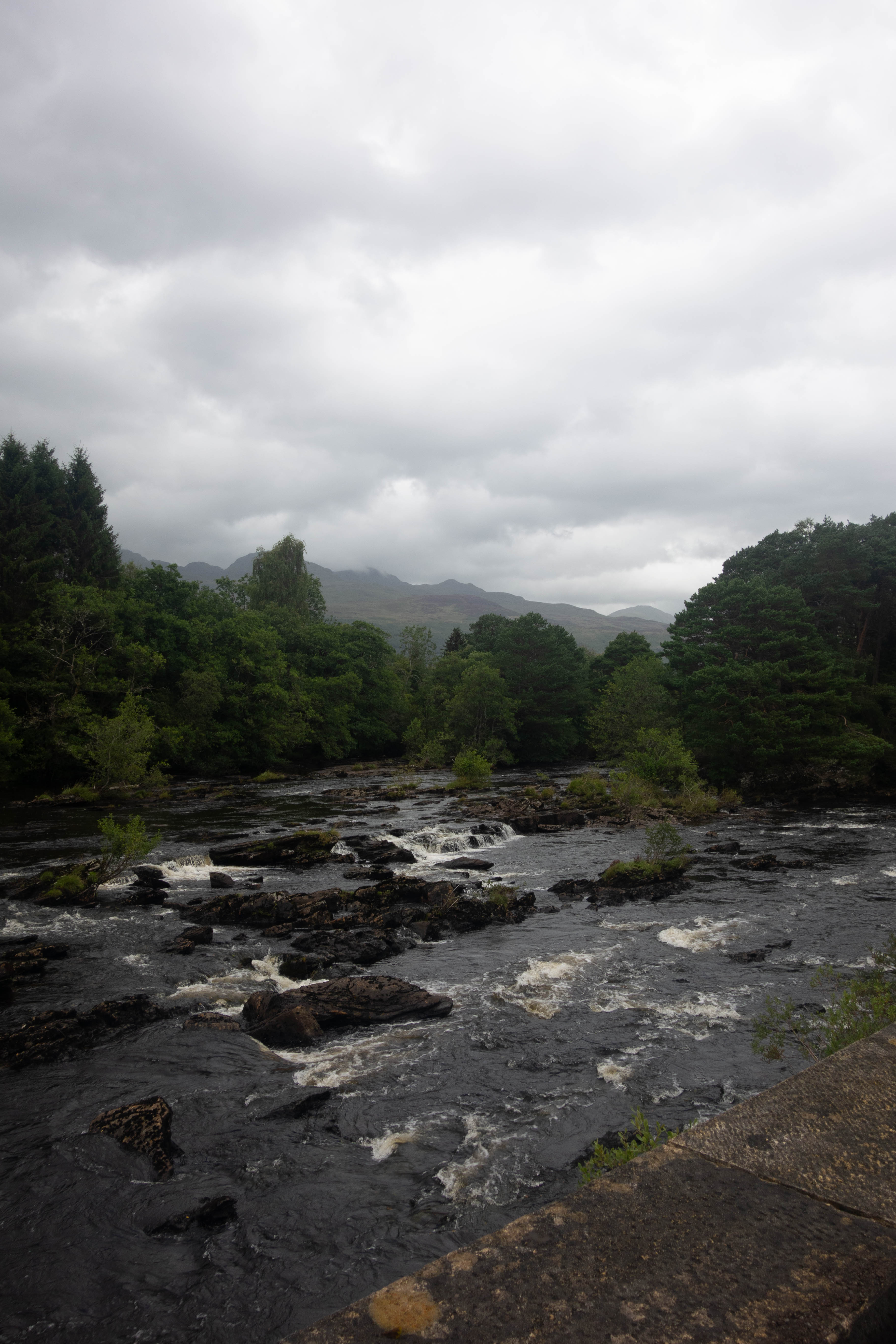 The waterfalls at Killin were impressive and it was the busiest place I had seen for days. There were tourists taking photos, coach trips and people wandering in and out of the gift shop. I found somewhere quiet to sit and got a late lunch at Shutters Restaurant before queuing up to get in the Co-op where I bought an eclectic selection of food. I think the Co-op normally caters for the local residents and passing tourists, not hungry bikepackers with limited cooking facilities. I knew there wasn’t going to be another shop for the next day or so until I got to Fort Augustus, so I bought as much as I could sensibly carry.