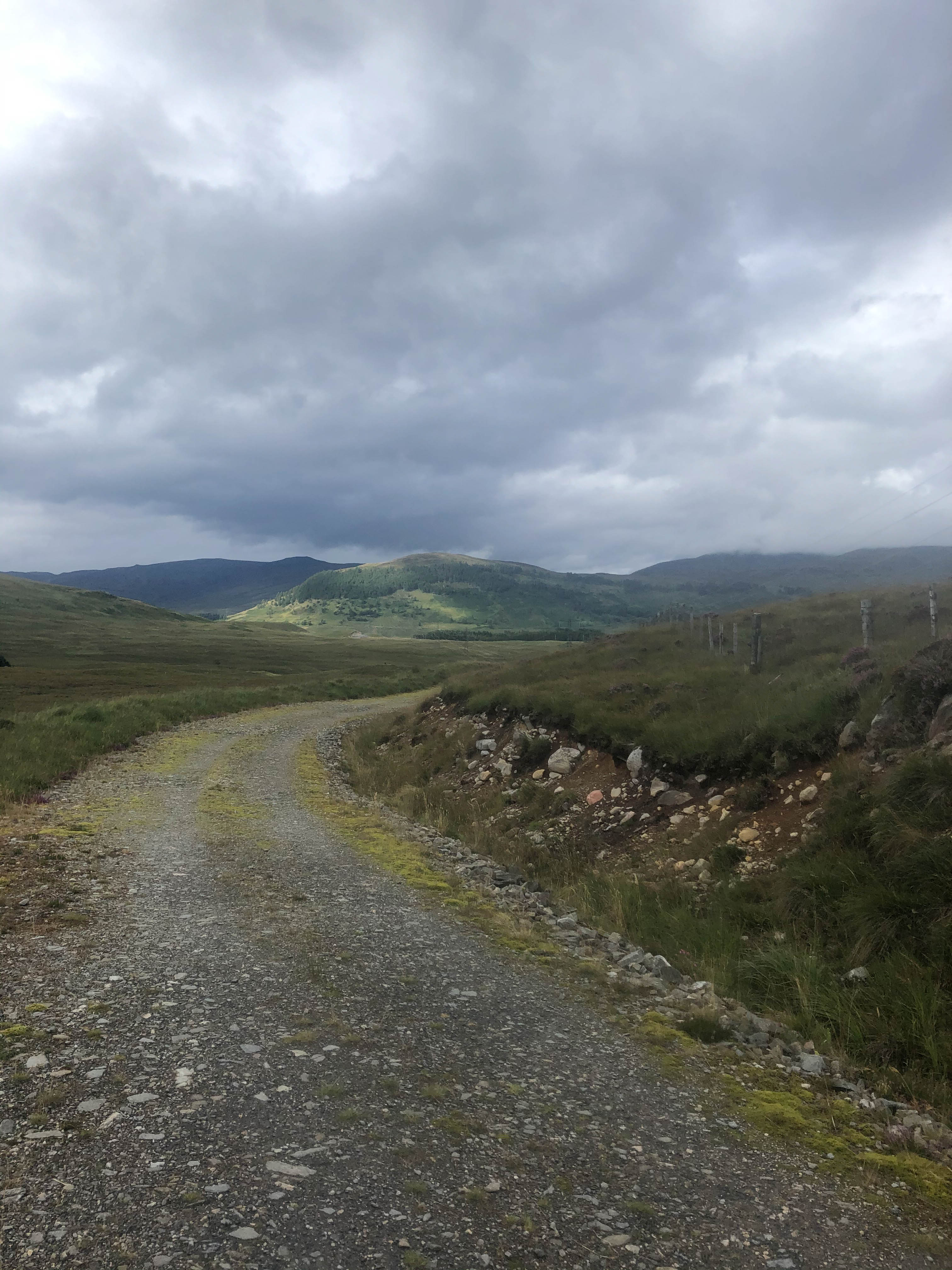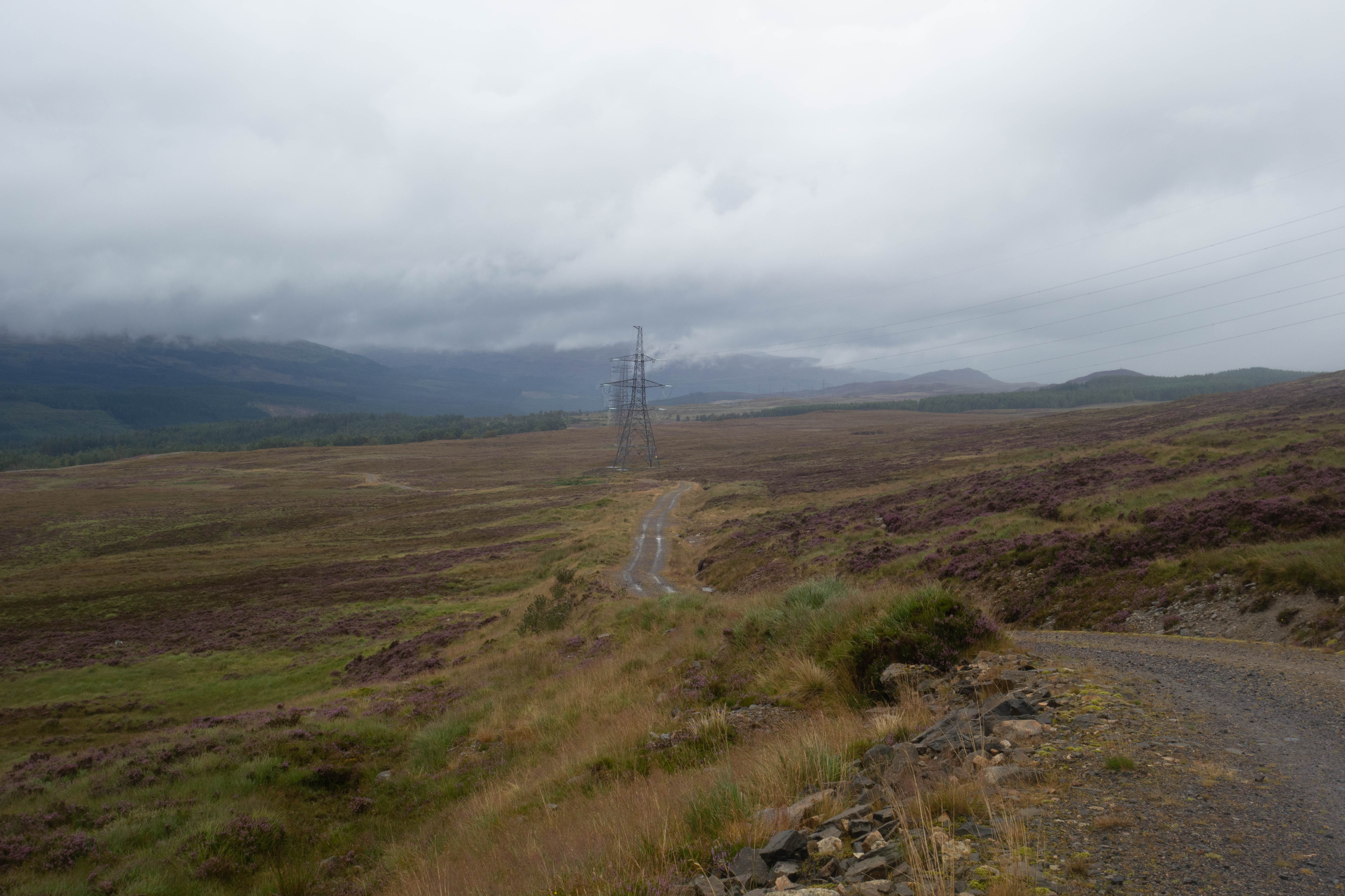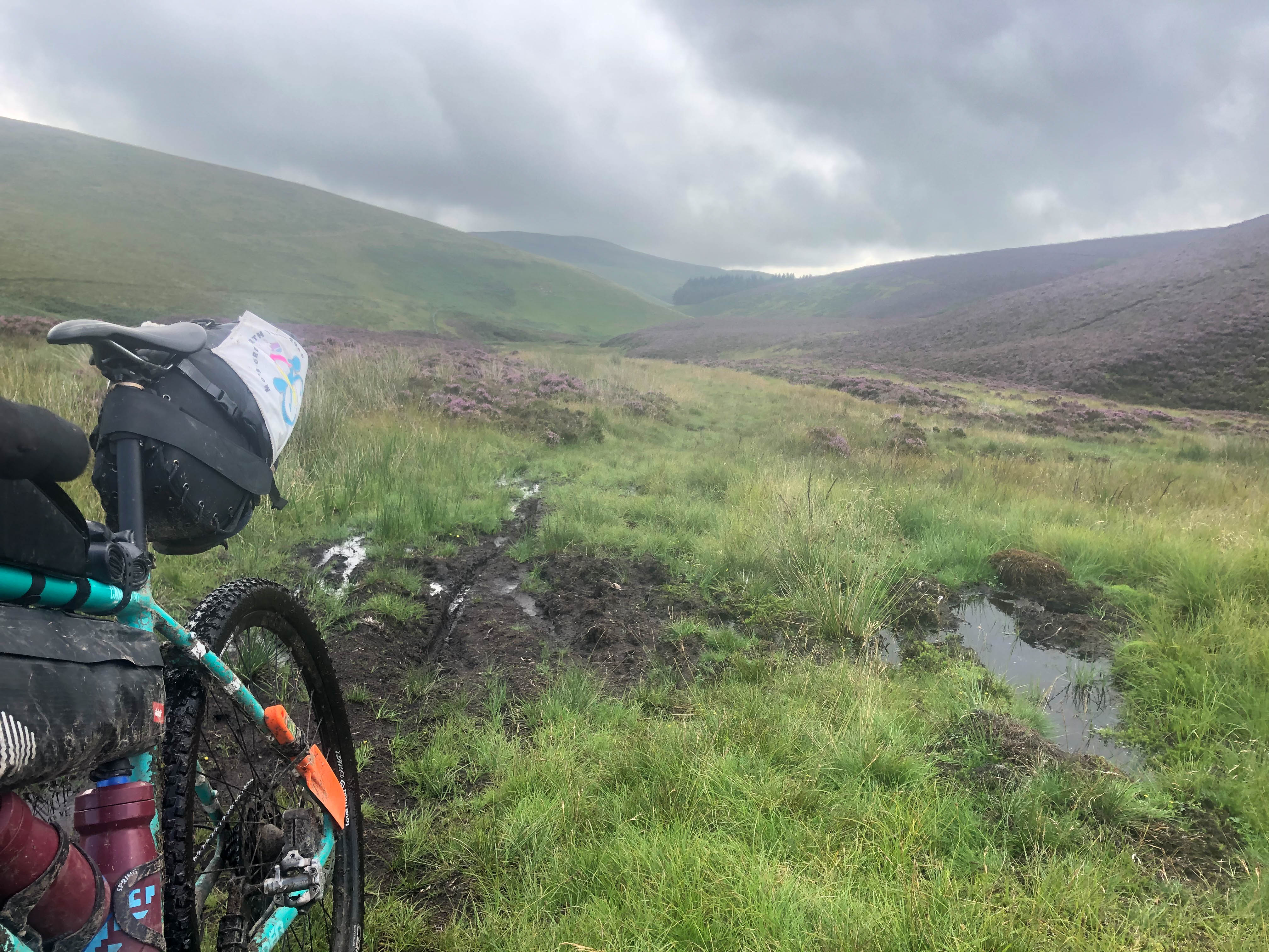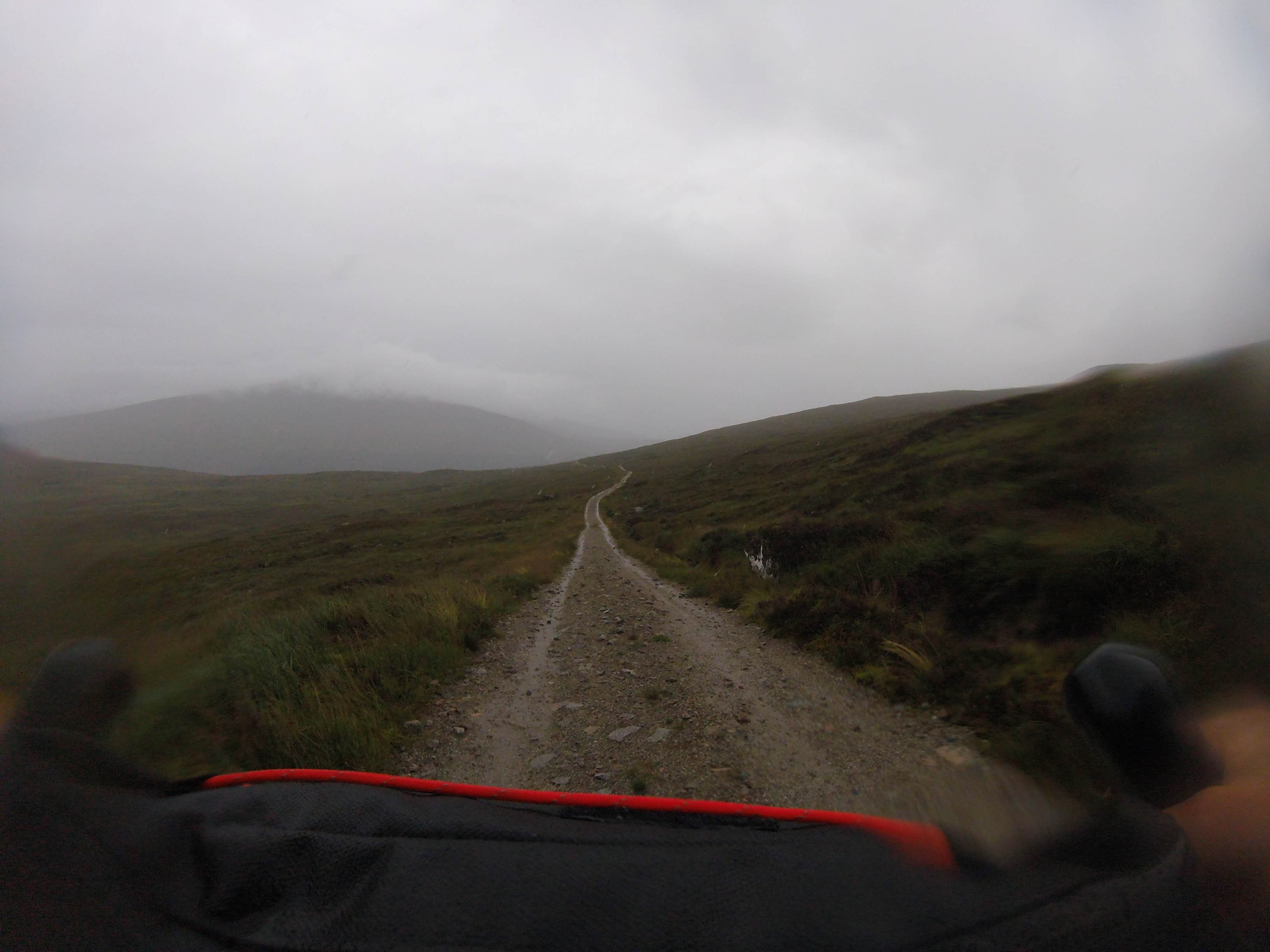 The day started off grey but dry as the trail climbed steeply out of Bridge of Balgie and I was glad I camped where I did. The trails were soaked, there were big puddles everywhere and the dryness didn’t last long. It rained for most of the morning as I rode through empty moorland and I didn’t see anyone for hours, apart from one guy riding in the other direction.