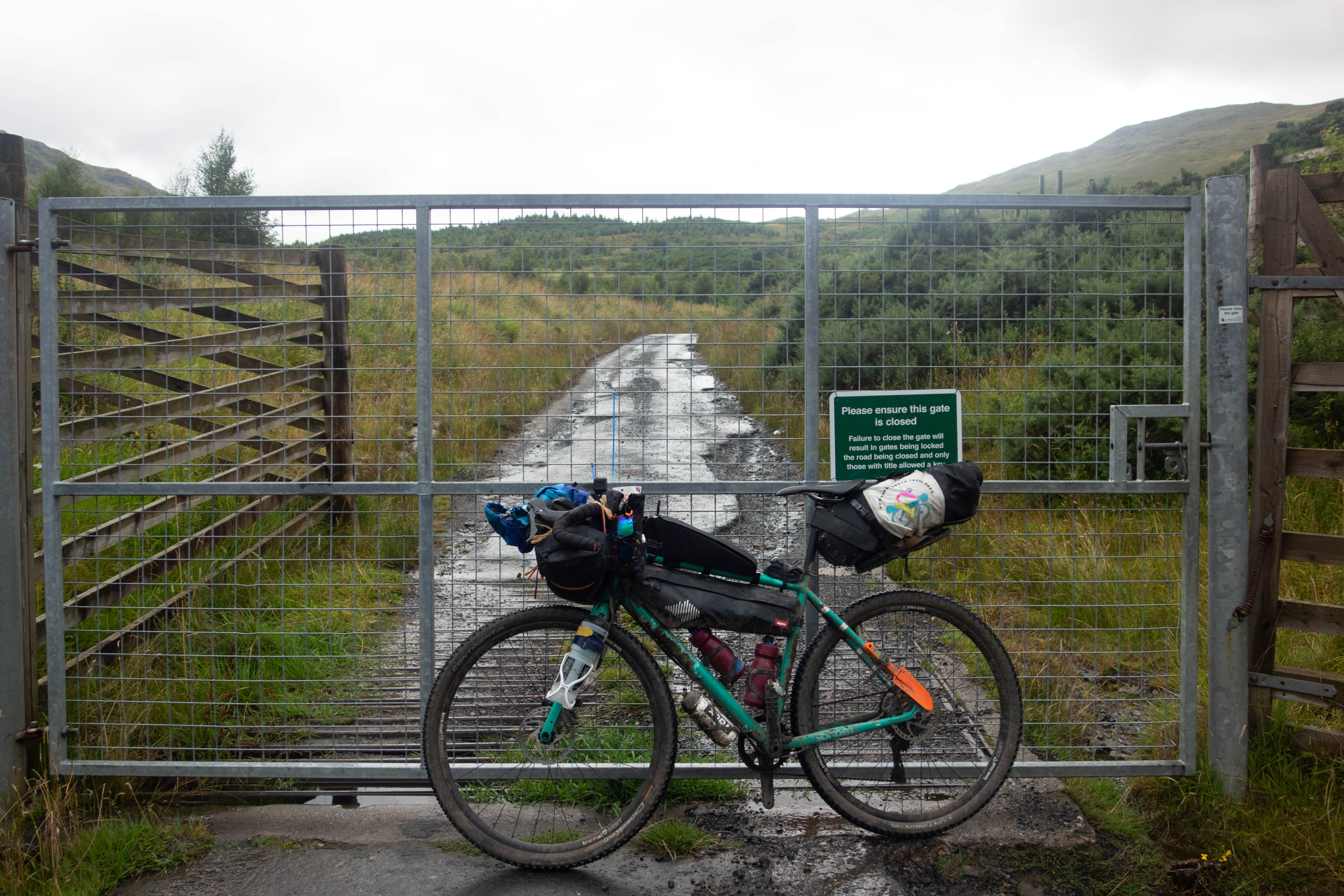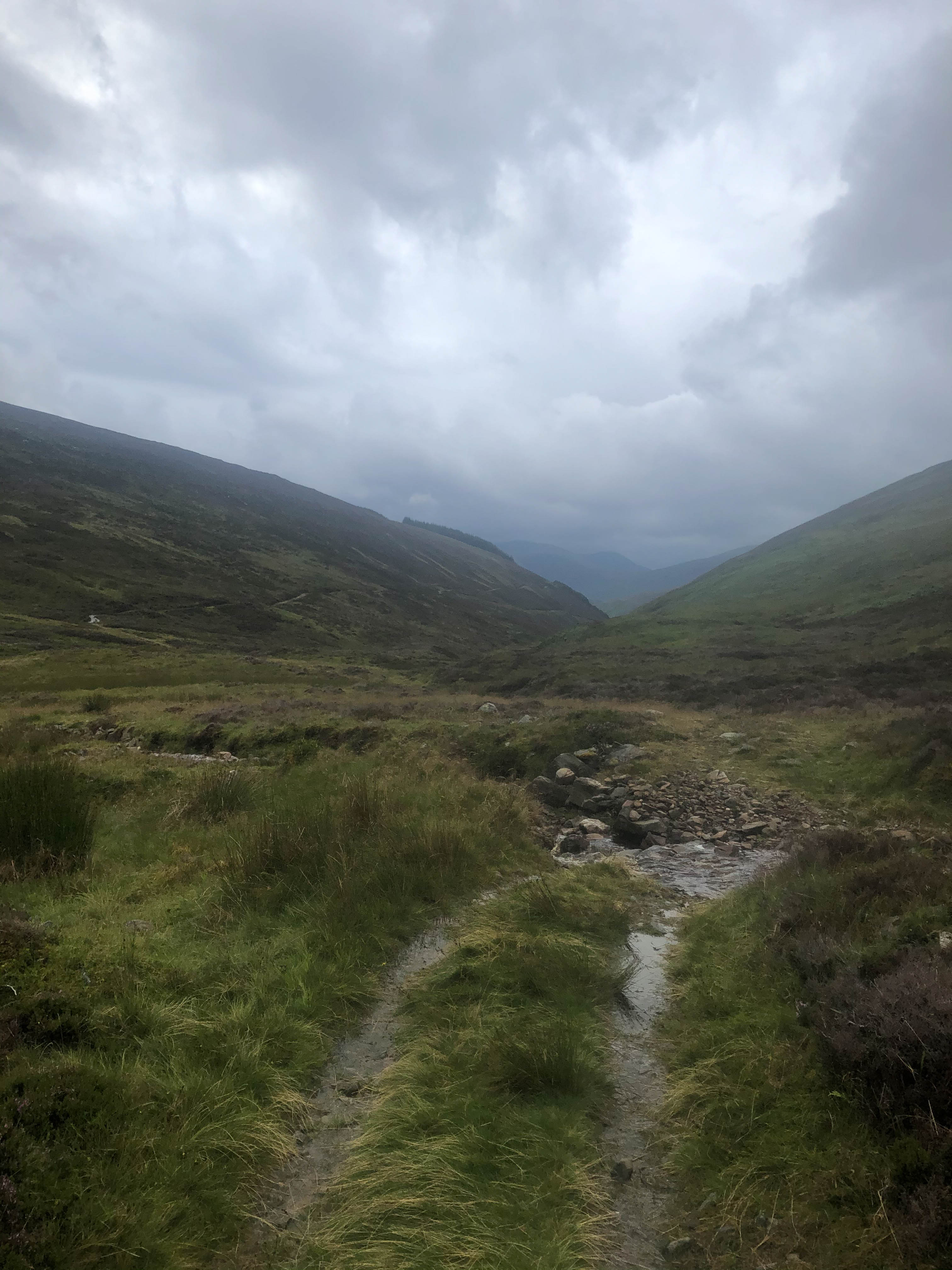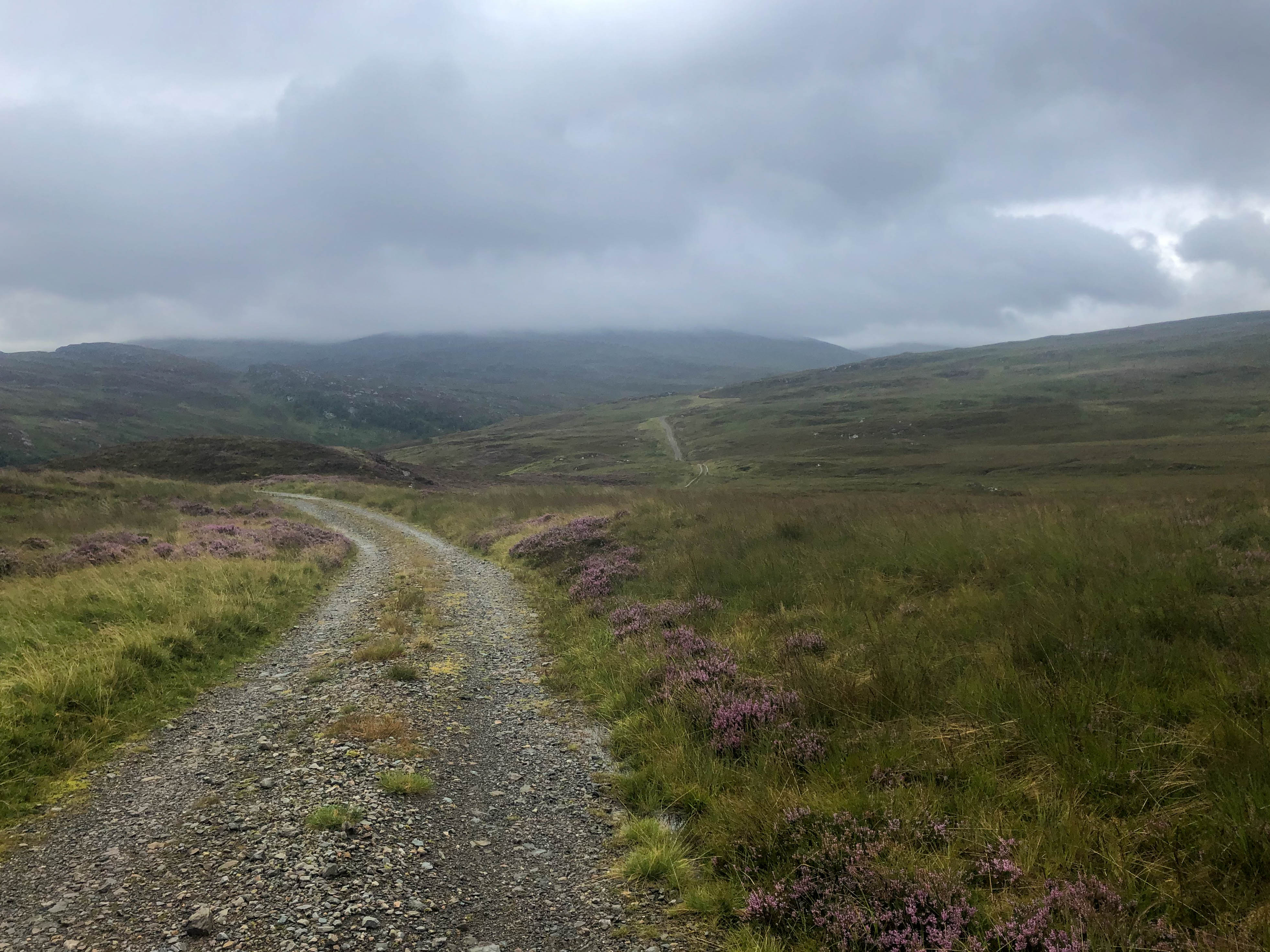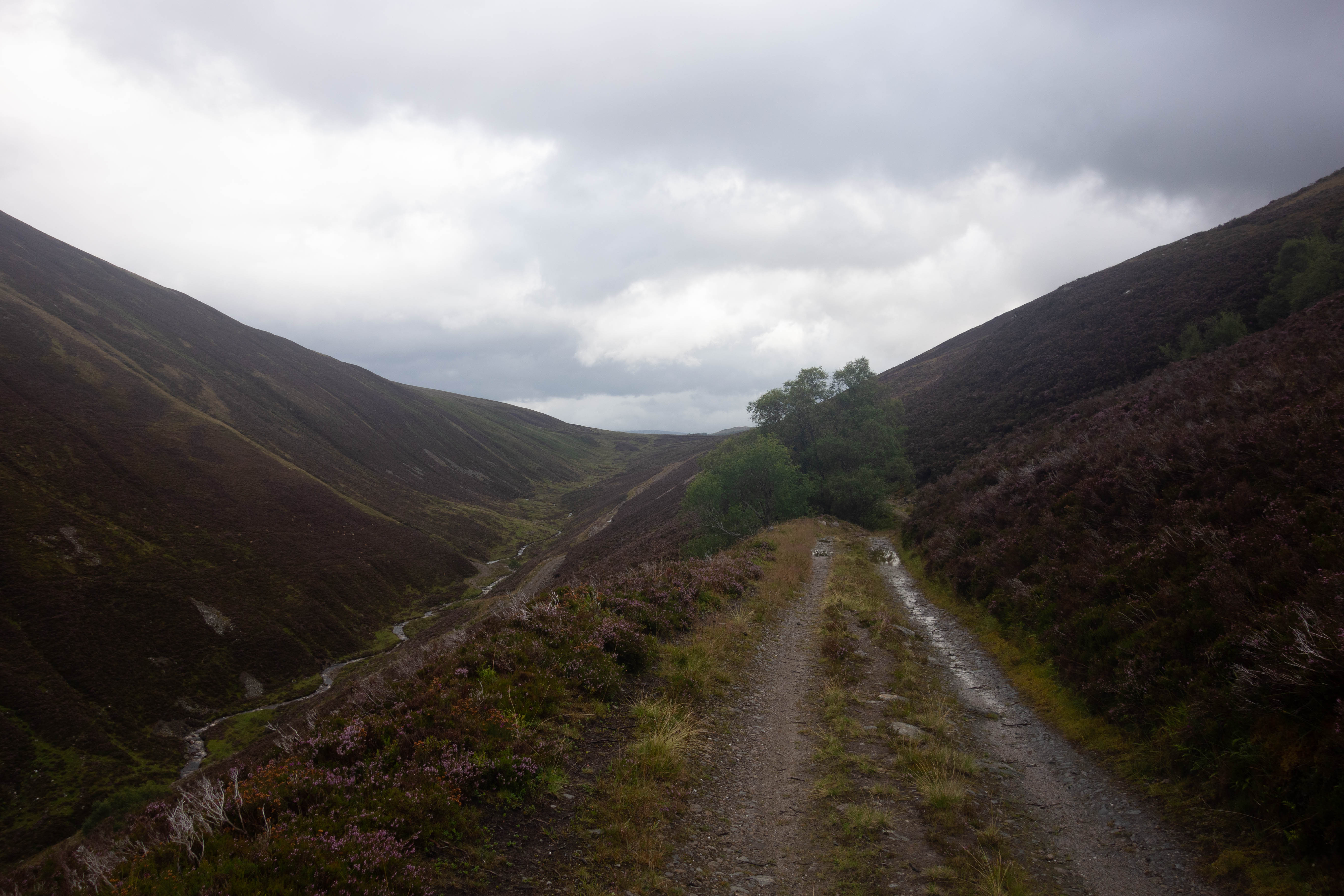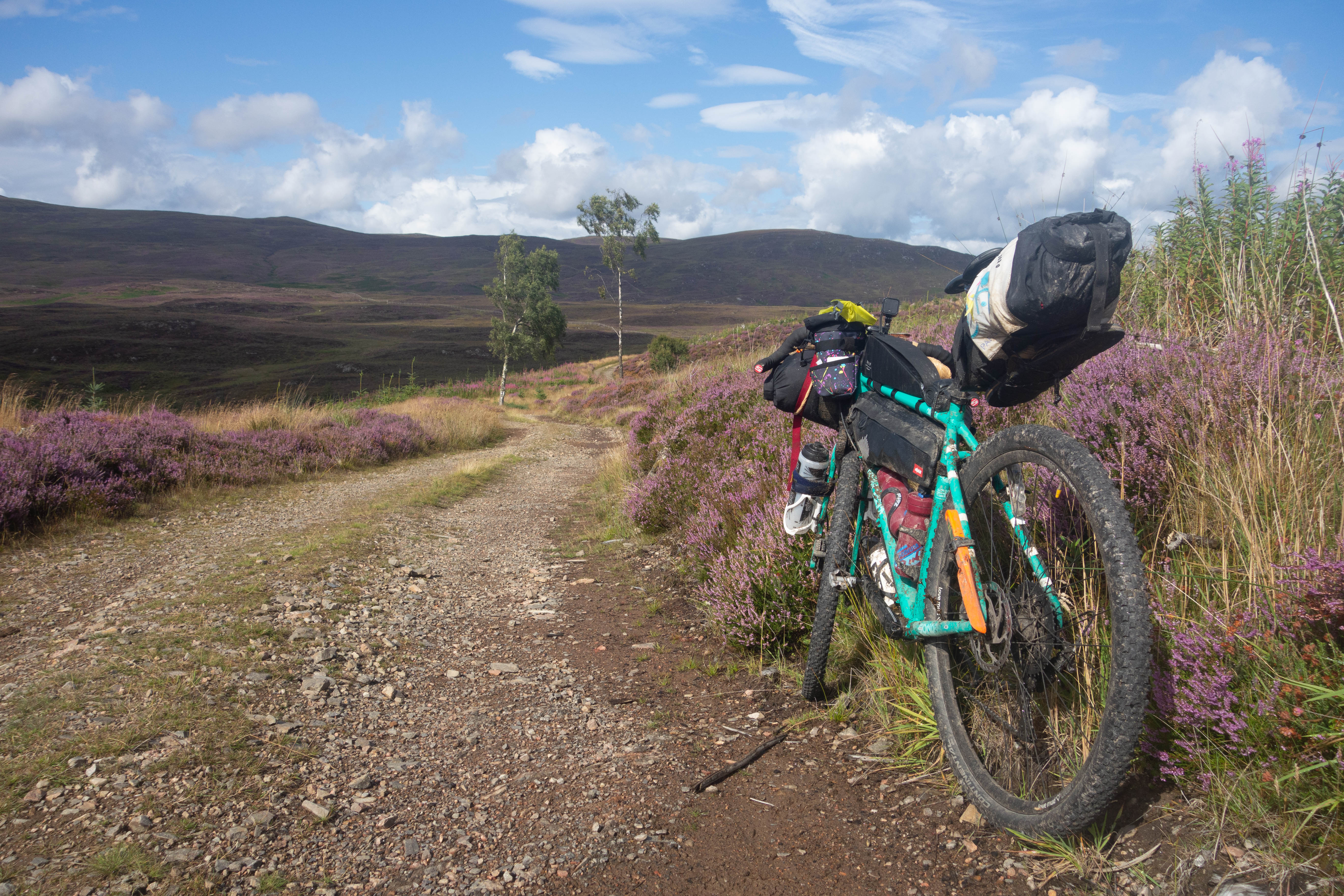 The day started off grey but dry as the trail climbed steeply out of Bridge of Balgie and I was glad I camped where I did. The trails were soaked, there were big puddles everywhere and the dryness didn’t last long. It rained for most of the morning as I rode through empty moorland and I didn’t see anyone for hours, apart from one guy riding in the other direction.