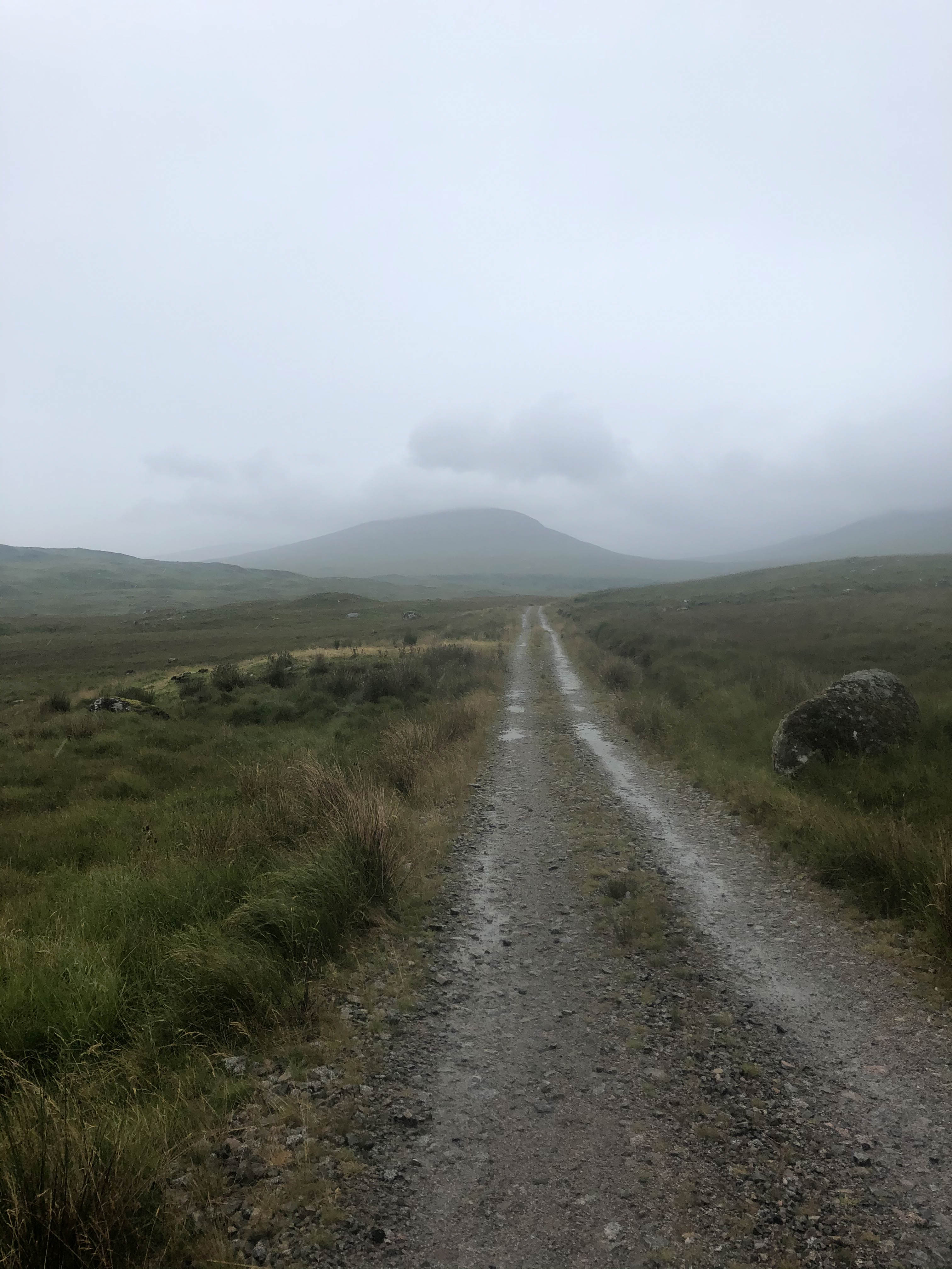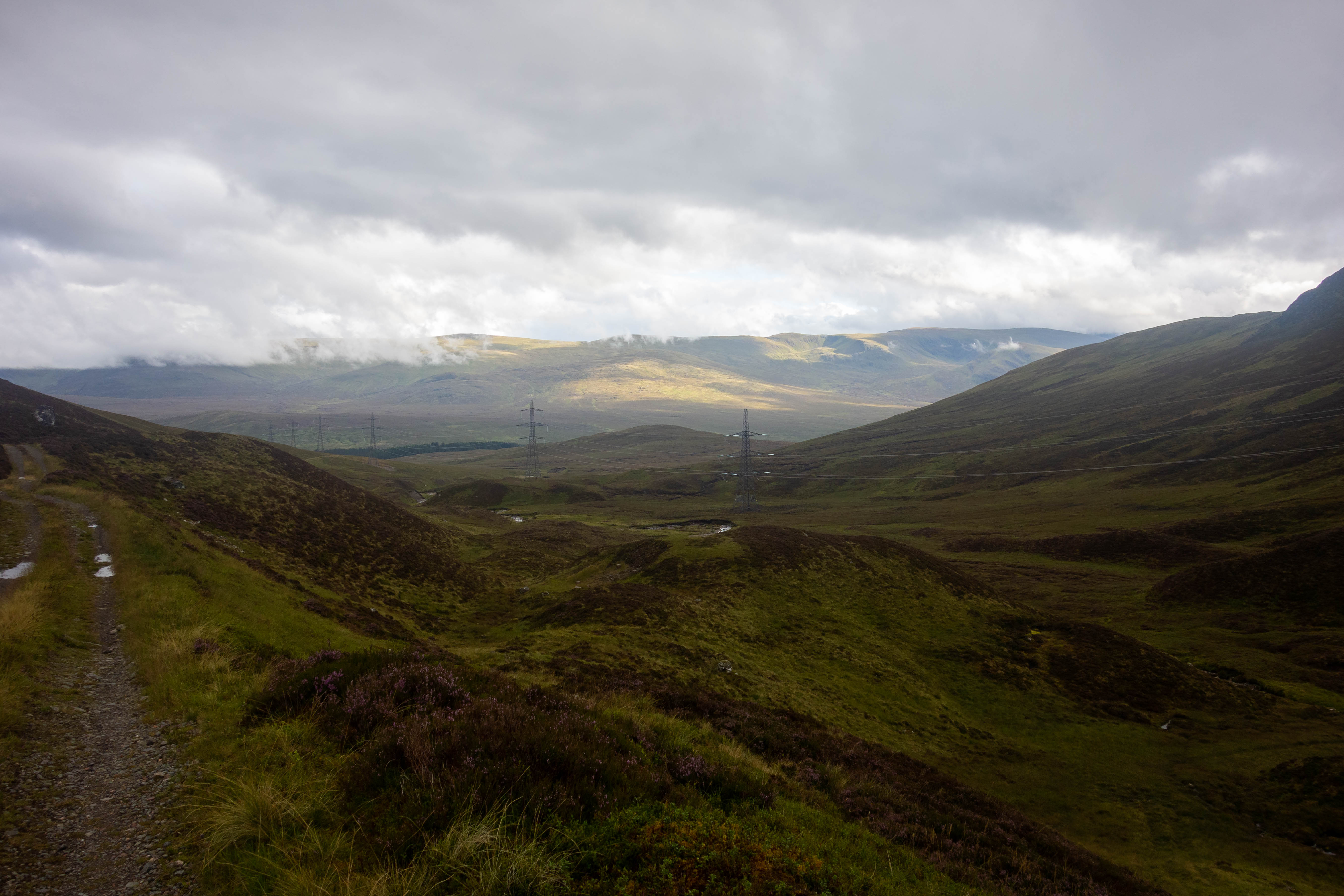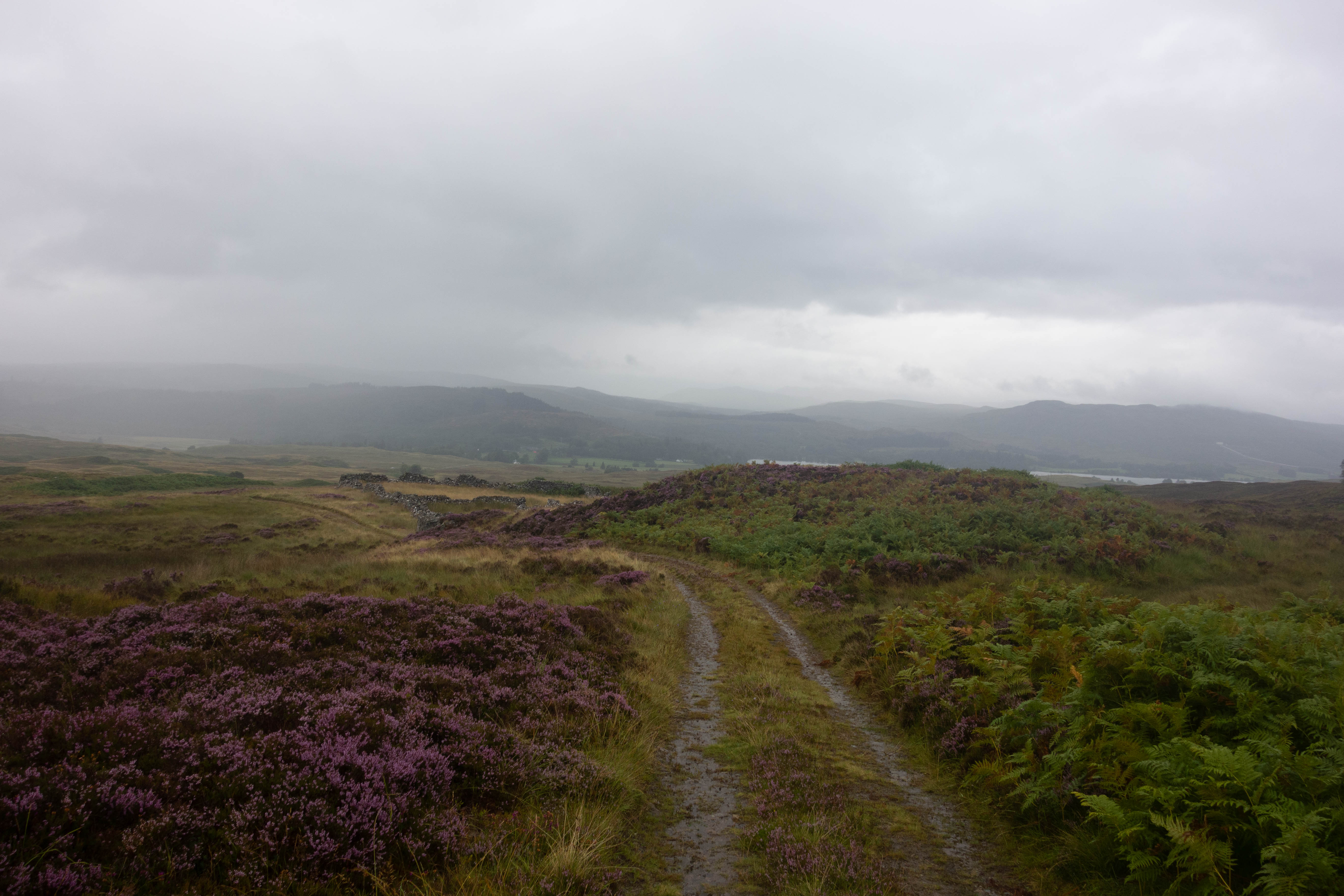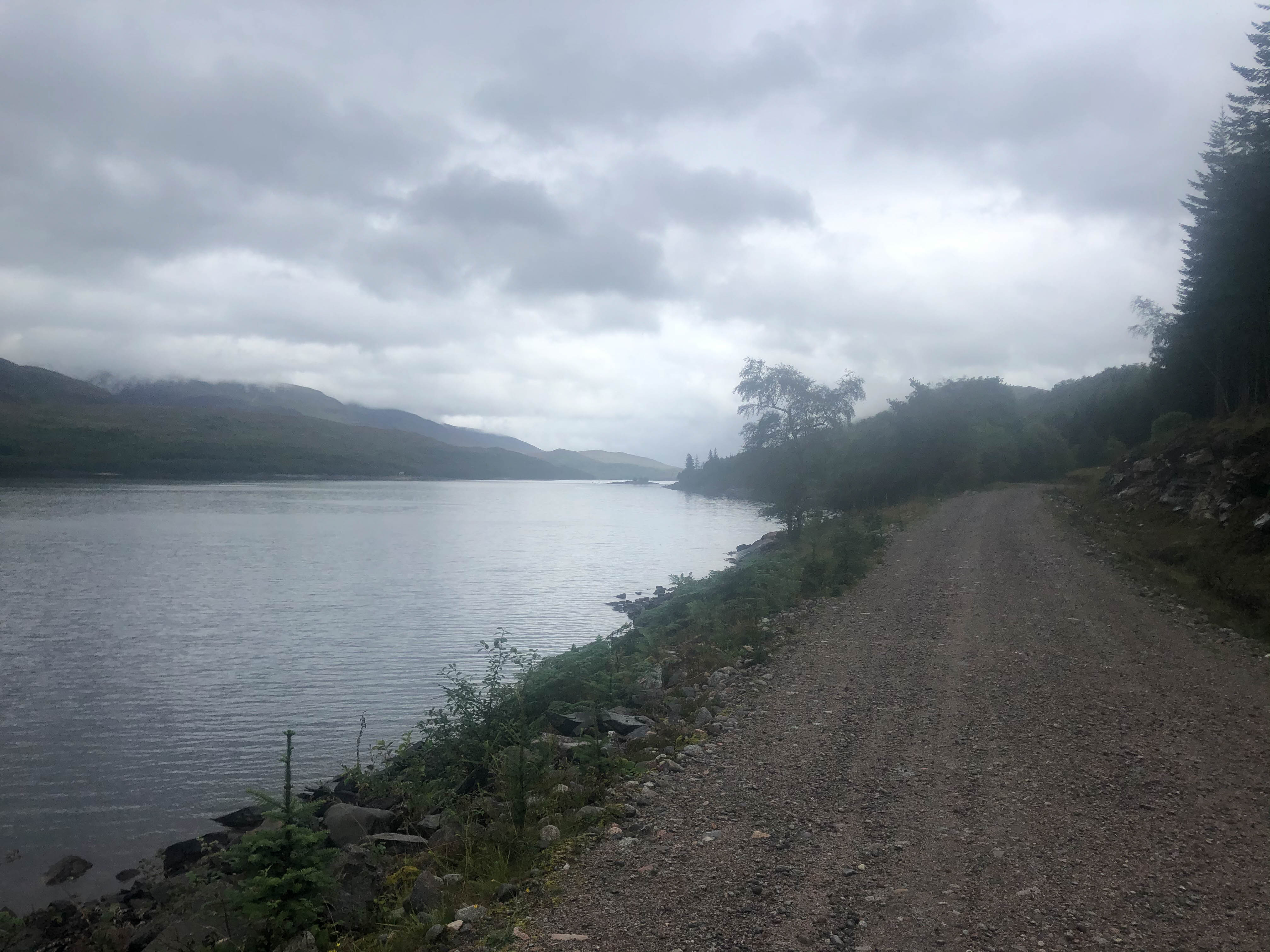 The day started off grey but dry as the trail climbed steeply out of Bridge of Balgie and I was glad I camped where I did. The trails were soaked, there were big puddles everywhere and the dryness didn’t last long. It rained for most of the morning as I rode through empty moorland and I didn’t see anyone for hours, apart from one guy riding in the other direction.