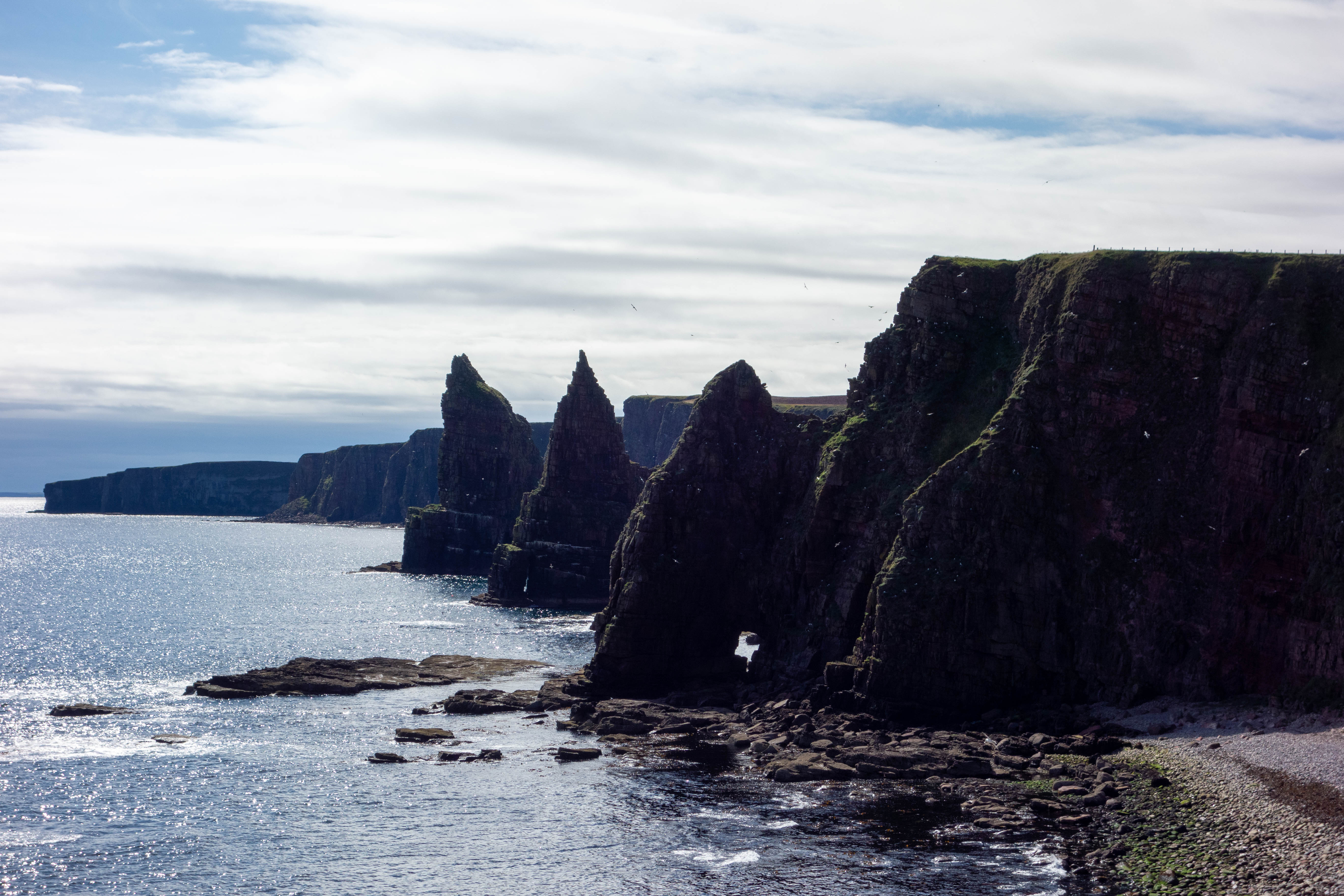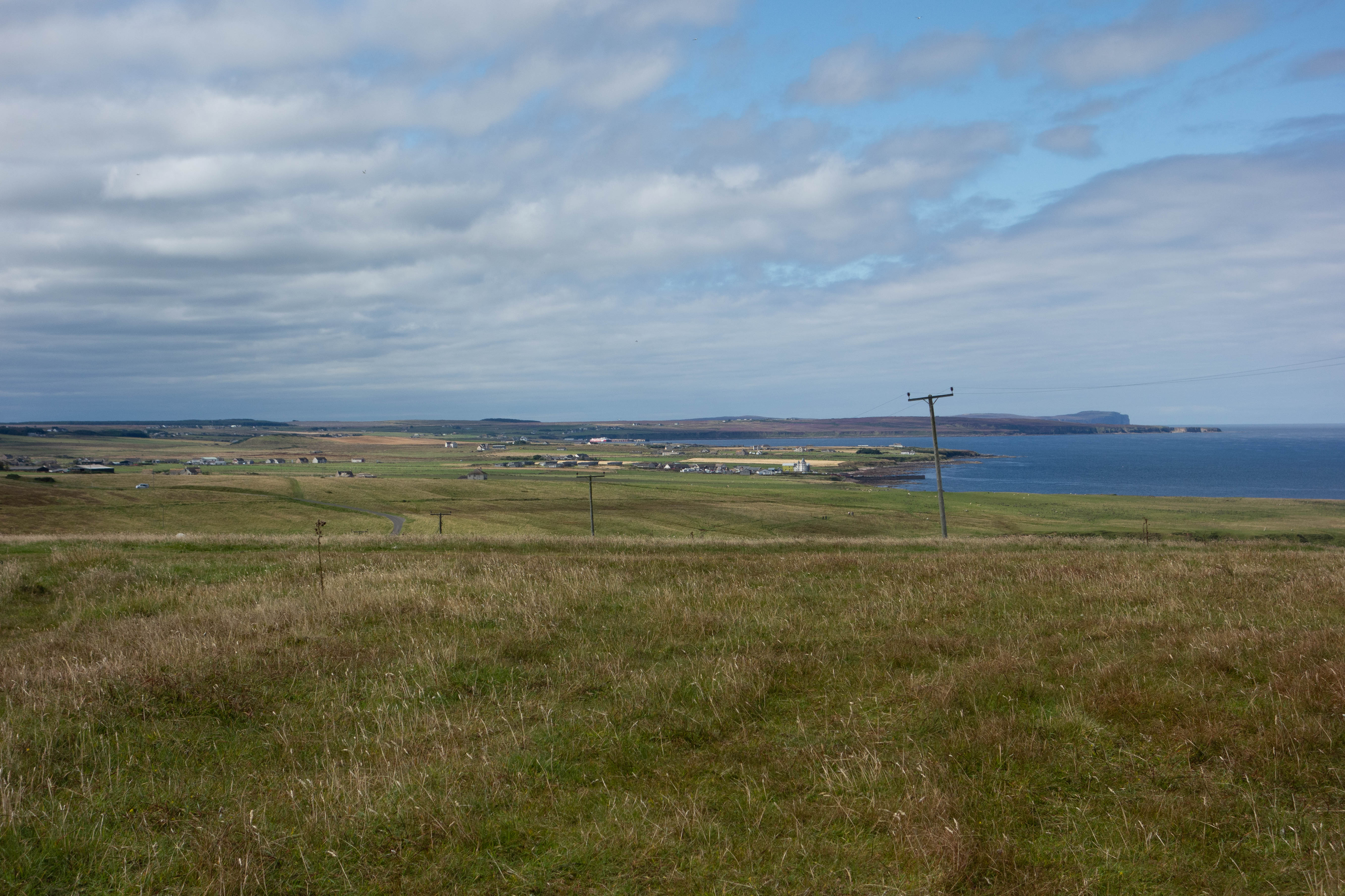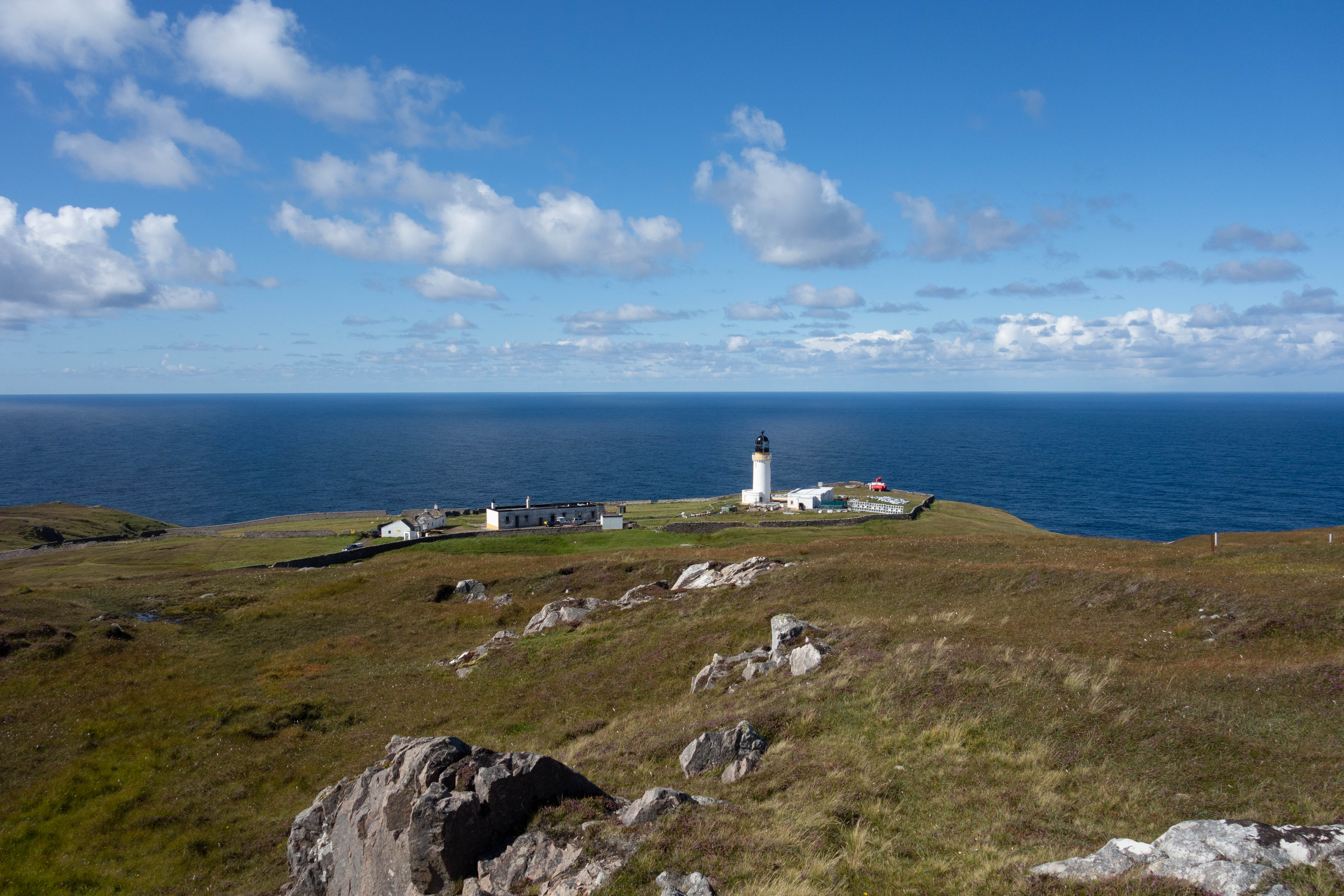 The main road into John o’ Groats had the most traffic I had seen since Durness two days ago. I turned off just after the “welcome to John o’ Groats” sign and headed east towards the lighthouse. Duncansby Head lighthouse is not as impressive as Cape Wrath. The small squat building sat nestled on the edge of the cliff and the car park was full of motorhomes and tourists. I rode along the cliff to see the sea stacks before heading back along the road and into John o’ Groats.