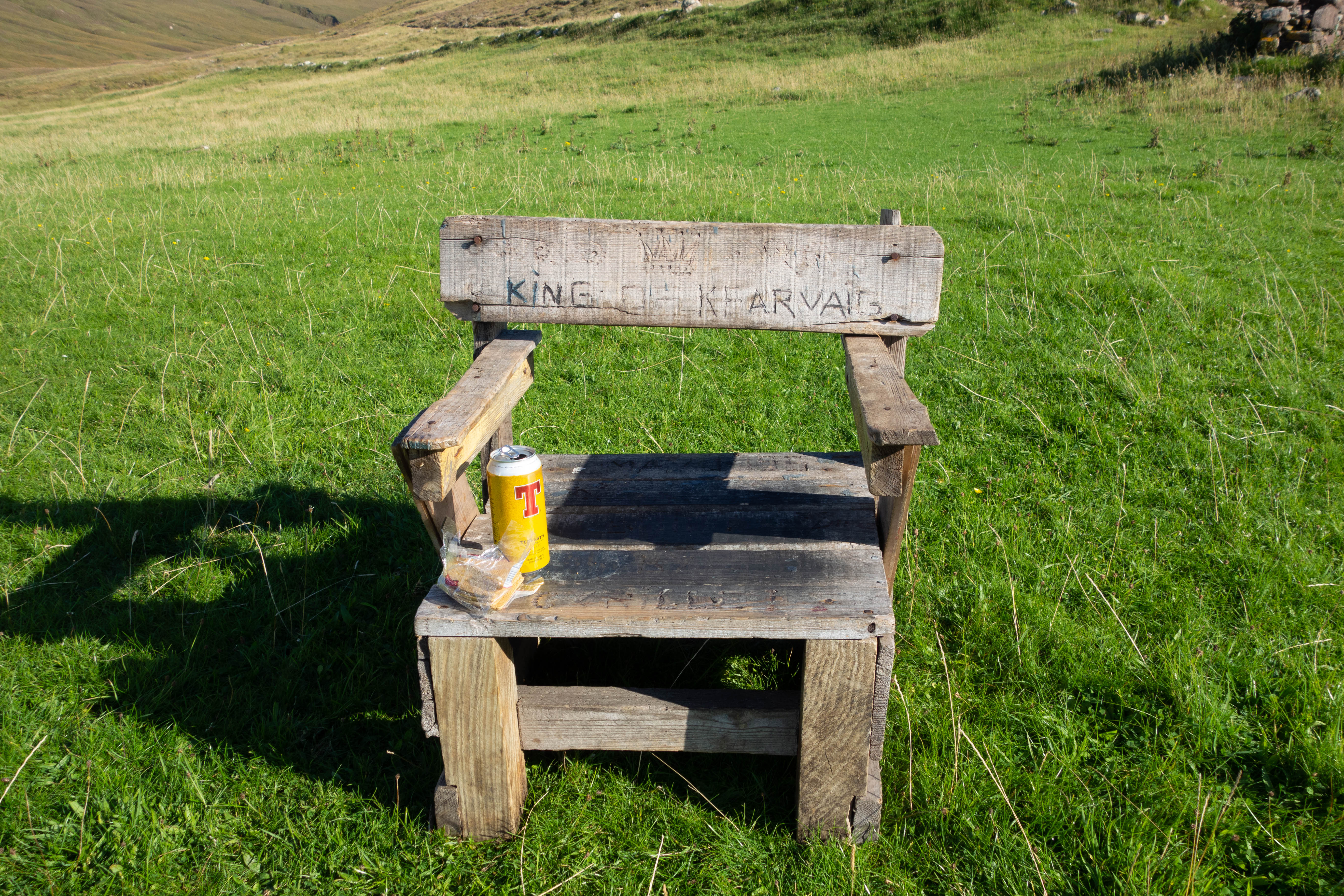 My back brake was making a horrible noise but I didn’t want to stop on the descent, but when I got down to the road I couldn’t ignore it anymore. The Pads were down to the metal. I fitted the spare set I’d been carrying and carried on along the road to Contin where the village store was open and a fish and chip van was in the car park. There wasn’t a great deal of choice in the store, but I was just glad that it was open (the next town with a shop was Durness in a day’s time and it was a long detour to find another shop). I bought a beer to go with my fish and chips, some pasta, a block of cheese, a pepperoni and some snacks for the next day. I sat and ate chips on a bench in the car park.