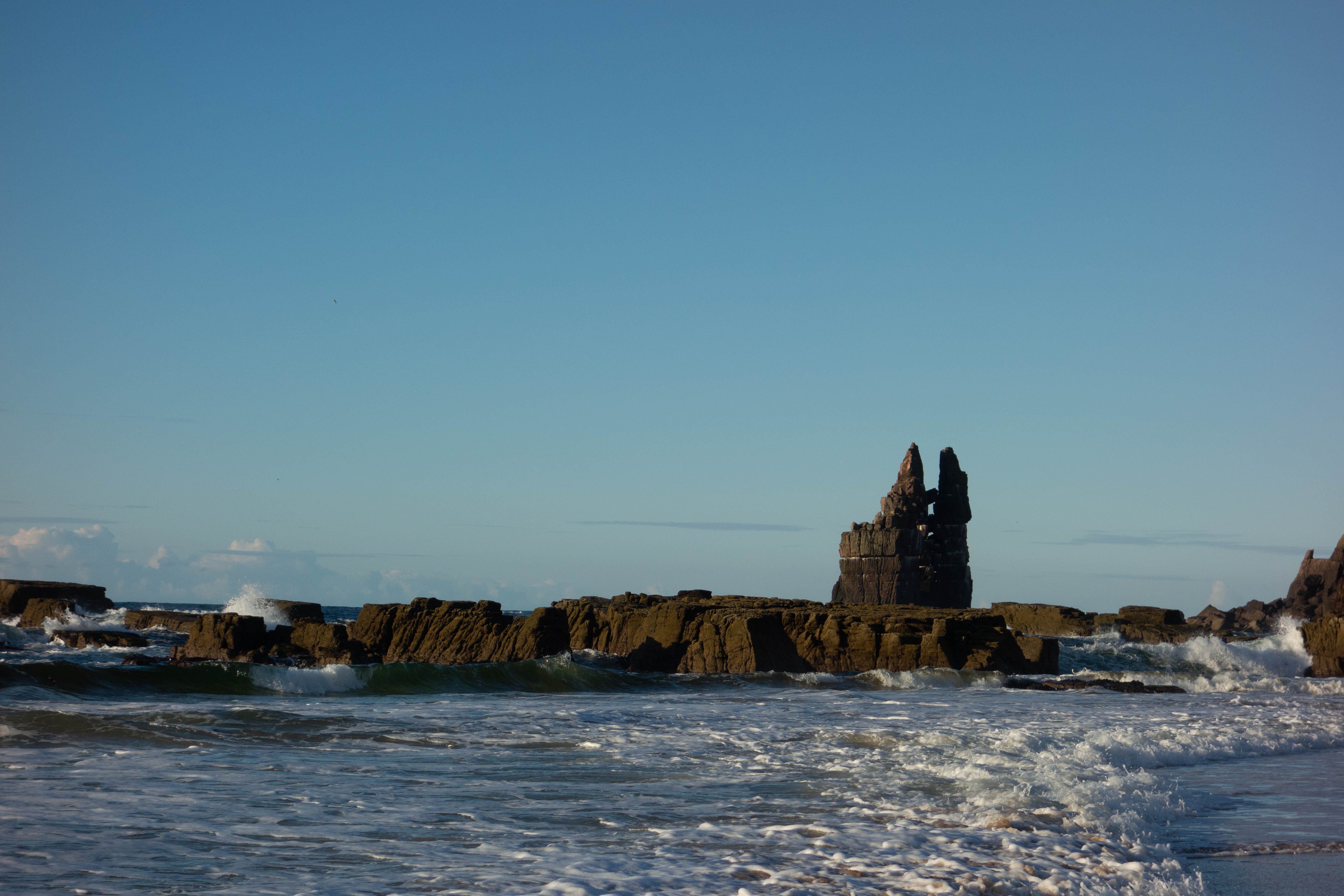 The landscape was mostly flat and although not particularly interesting, I was grateful for the easy riding. I kept going, along what was possibly the longest, straightest, most boring road I had ever been on. At one point the electricity poles swapped from the right side of the road to the left, otherwise the road just went on, looking exactly the same for miles. Eventually the road crested a small hill and turned to reveal the sea. It was a wonderful sight. I rolled down the hill and turned east onto the coast road.
