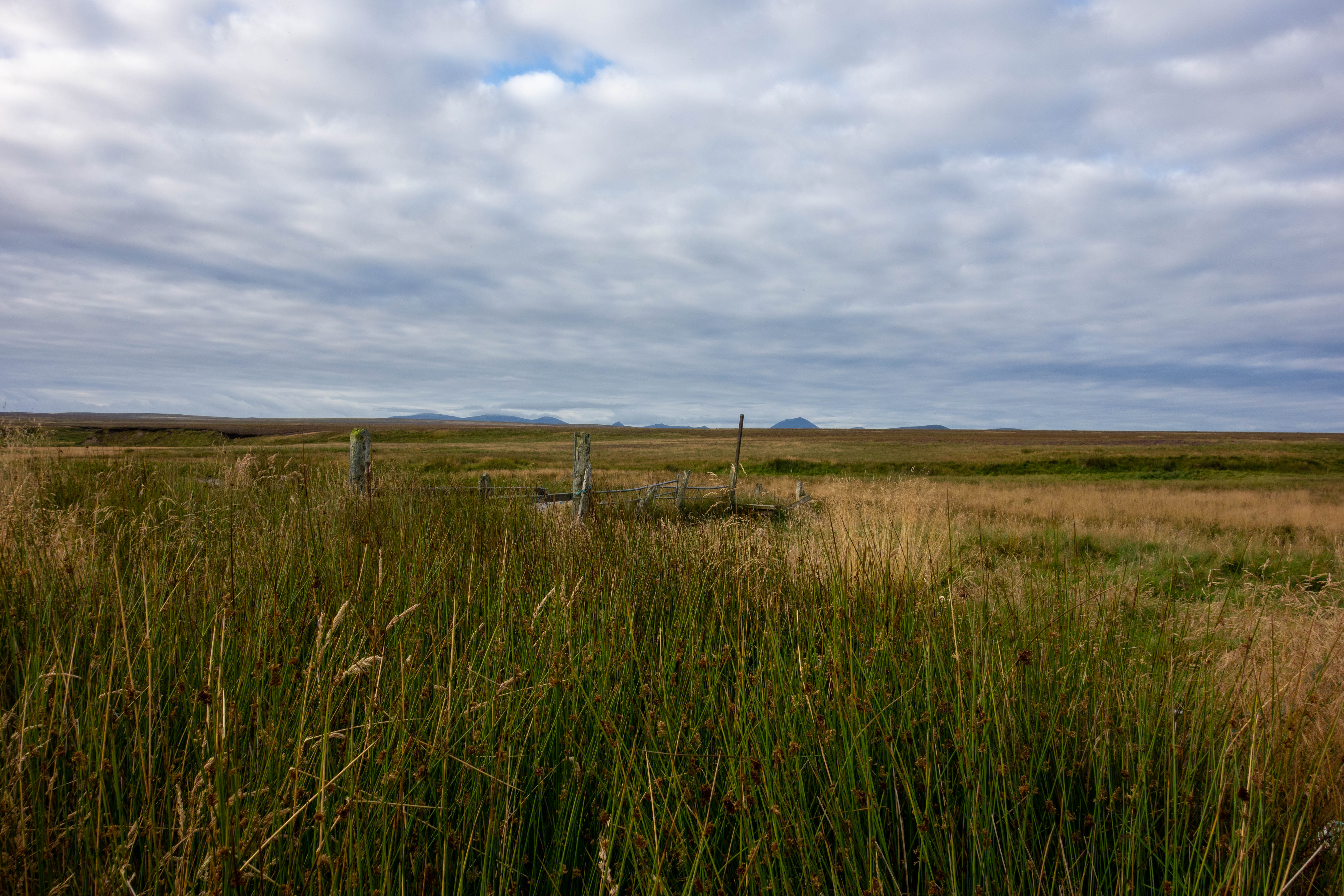 The path from The Crask inn to Loch Choire is rough and in parts it seems almost non-existent. I was lucky that it had been fairly dry lately as the path crossed many ditches, spanned by rickety bits of wood, and was boggy in quite a few places. There were very few landmarks on this stretch of the path. The open moorland stretching out almost indefinitely either side of me with The Crask Inn still visible in the distance. As the path started to climb and make its way around the side of a boggy hill, I remembered I had forgotten to fill up my water bottles at The Crask. “Never mind” I thought, I’ll just filter some out of one of the streams.