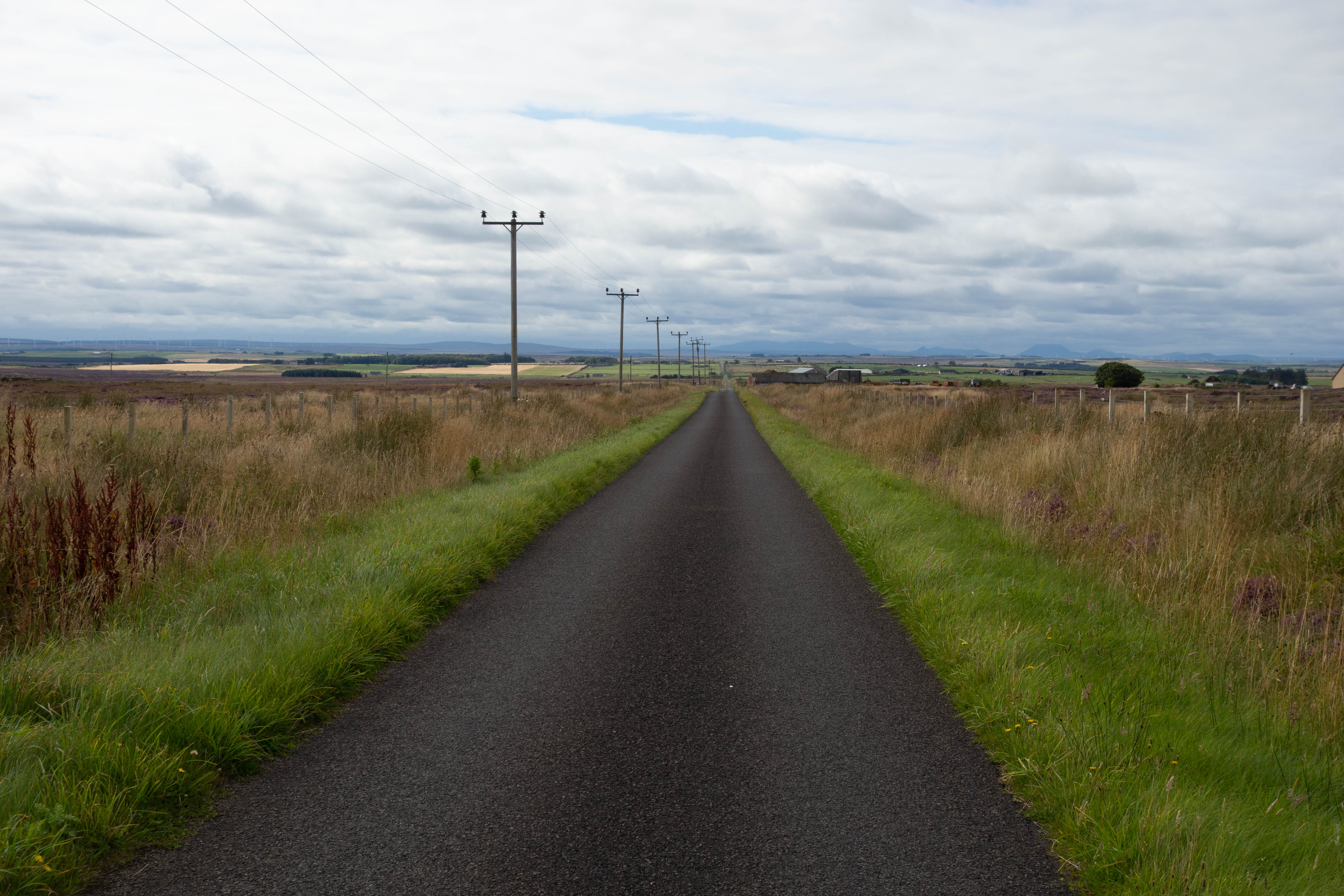 In the morning the midges had returned, so I packed up and headed off pretty quickly. There was a village about 15 miles down the road where I hoped I could get some breakfast, a coffee and enough food to get me to the finish at John o’ Groats in the afternoon. I passed the wind farm, crossed the main road and continued on quiet back roads through farmland.